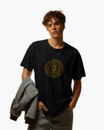 Elevate your streetwear game with the Nocturnal Emblem Tee from Dusk Till Dawn. Featuring a regal golden owl surrounded by a hypnotic circular crest, this black tee speaks to the bold, the watchful, and the wise. A perfect fusion of mystery and power, this shirt is designed for those who thrive in the twilight—where day meets night and purpose never sleeps.